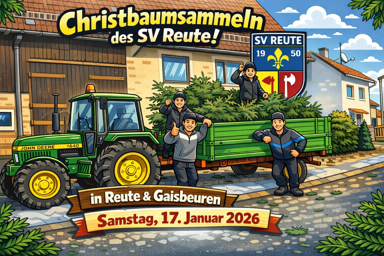Die Fußballer des SV Reute 1950 e.V. führen auch dieses Jahr wieder das traditionelle Sammeln von ausgedienten Weihnachtsbäumen in den Ortschaften Reute und Gaisbeuren durch, Termin ist Samstag 17.Januar 2026. Gegen einen kleinen Unkostenbeitrag werden die Bäume ab etwa 9:30 Uhr direkt an den Haustüren abgeholt.
