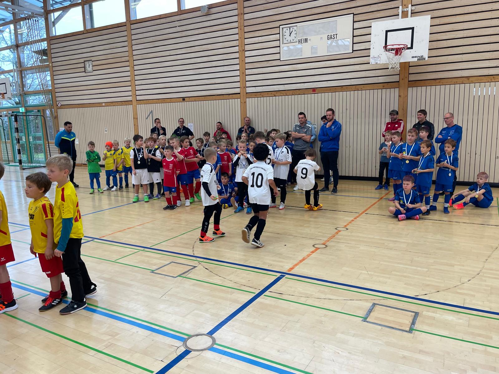 Gegen 13 Uhr ging ein intensiver, aber erfüllender Turniervormittag zu Ende. Bei der Siegerehrung strahlten alle Spielerinnen und Spieler, als sie ihre Medaille und eine kleine Überraschung in den Händen hielten. Müde, aber zufrieden machten sich Familien und Trainer anschließend auf den Heimweg – ein schöner Moment, an dem man sehen konnte, wie viel dieser Tag allen bedeutet hatte. Zu Gast beim SV Reute waren die Teams von der TSG Bad Wurzach (2), FC Wacker Biberach, SV Haisterkirch (2), SV Muttensweiler, FC Leutkirch und SV Seibranz (2), der Gastgeber hatte gleich drei Mannschaften ins Rennen geschickt und seinem Nachwuchs beliebte Einsatzzeiten in der Halle geboten. Trotz kurzfristiger Einladung hatte sich das Teilnehmerfeld sehr schnell gefüllt und leider mussten sogar einige Absagen erteilt werden.