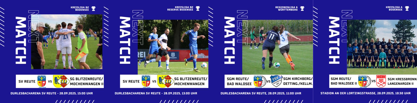 Alle Aktivenmannschaften dürfen am Sonntag zuhause antreten. Die SGM Bad Waldsee/Reute II bei den Frauen empfängt Kressbronn/Langenargen II und möchte sich im zweiten Saisonspiel weiter steigern. Die SGM I empfängt am Reutener Durlesbach die SGM Kirchberg/Dettingen/Kellmünz I und will den guten Start in der Regionenliga ausbauen. Für die Reutener Herren steht am Sonntagnachmittag ein weiterer Heimauftritt an, Gegner ist die SGM Blitzenreute/Mochenwangen II.