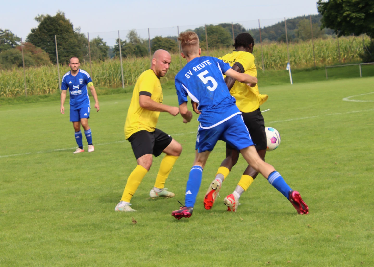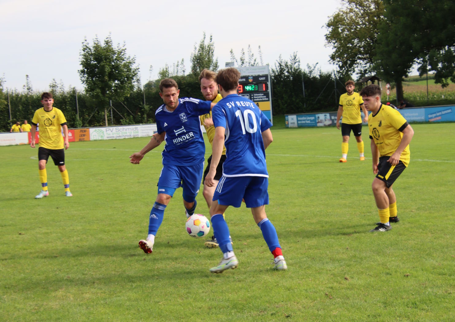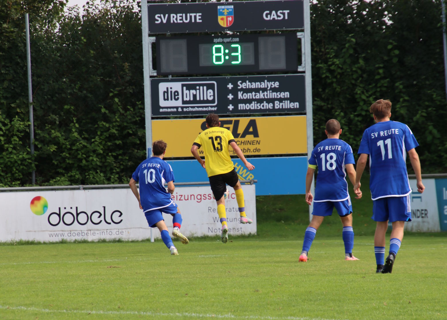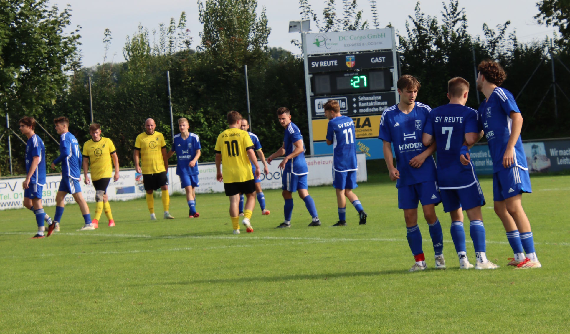 Reute legte im Heimspiel gegen Schmalegg gut los und ging schon nach 10 Minuten durch zwei Standards mit 2:0 in Front. Zunächst köpfte Noah Geiselhart einen perfekten Eckball von Kevin Kraus zur Führung ein, ehe Kevin Kraus einen Handelfmeter sich zum 2:0 verwandelte. Reute blieb am Drücker und hatte durch Linus Hörmann und Kevin Kraus die Chancen weiter zu erhöhen. Doch nach einer halben Stunde überließen die Gastgeber die Gäste aufkommen und fast schon mit Ansage markierte Schmalegg den Anschlusstreffer. Doch der SVR konnte schnell zurück schlagen, nachdem Noah Geiselhart und Kevin Kraus in den Folgeminuten mit einem Freistoß noch am Keeper scheiterten. Auf kluges Zuspiel von Julian Neyer traf Kevin Kraus vier Minuten nach dem Gegentreffer ins lange Eck zum 3:1-Halbzeitstand.
