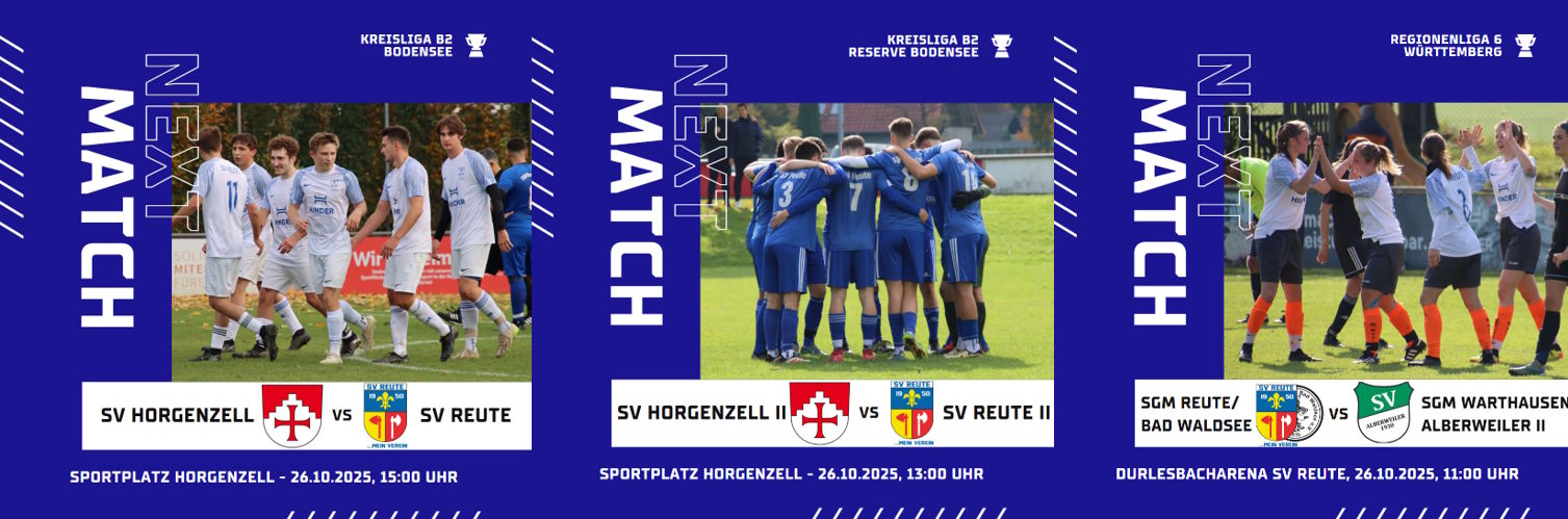 Die Herren des SV Reute müssen am letzten Spieltag der Hinrunde beim direkten Verfolger SV Horgenzell antreten, die Frauen empfangen am Reutener Durlesbach den Tabellenführer SGM Warthausen/Alberweiler II. Bei den Junioren bestreiten die C1-Junioren das Spitzenspiel in Wilhelmsdorf, am Freitagabend misst sich die Reutener AH beim Nachbar SV Bergatreute.
